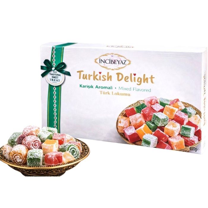 Title: Incibeyaz Mixed Flavored Turkish Delight 400g - Halal & Gluten Free