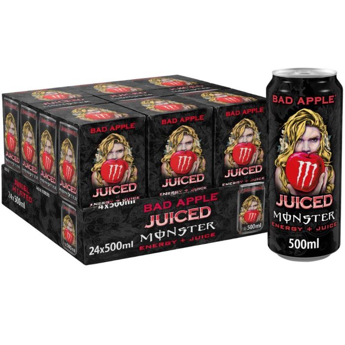 Energize Your Day with Monster Bad Apple Energy Drink Monster Bad Apple Energy Drink comes in 500ml cans, for your daily boost. This pack includes 24 cans, arranged in 6x4pk. Each can delivers a crisp apple kick, ensuring a refreshing taste. Ideal for those seeking a reliable energy drink. Key Features 500ml Cans: size for on-the-go energy. Pack of 24: Comes in 6x4pk for convenience. Crisp Apple Kick: Enjoy a refreshing apple flavor. Energy Drink: Ideal for boosting your energy levels. for Any Occasion Whether you're at work, school, or on the go, Monster Bad Apple Energy Drink is your go-to choice. Stay energized with this crisp apple kick.