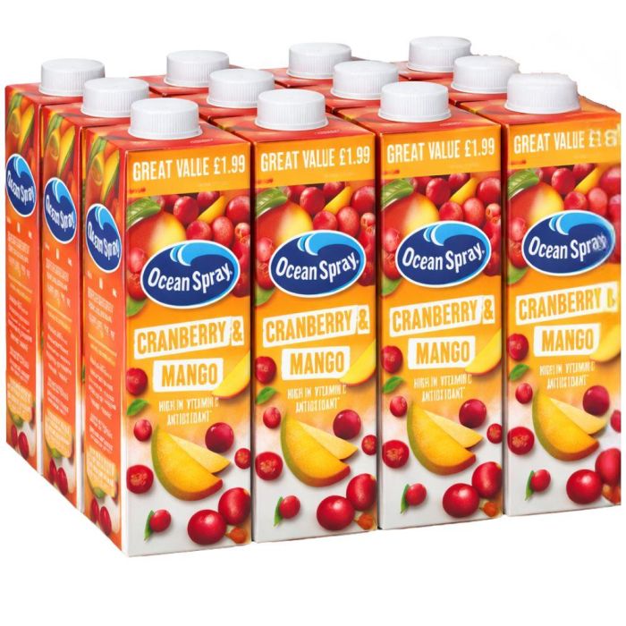 Title: Ocean Spray Cranberry & Mango Juice PMP - Pack of 12 x 1L - Best Before: 12/2025