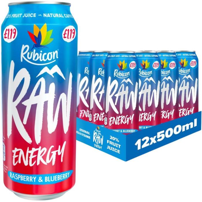Energize Your Day with Rubicon Raw Energy ✨ Rubicon Raw Energy Raspberry & Blueberry Drink is for those seeking a refreshing boost. Each pack contains 12 cans, each 500ml. This carbonated mixed fruit juice & flavor energy drink combines the best of raspberry and blueberry. Ideal for on-the-go energy needs. Key Features Pack of 12 x 500ml: Get enough for your daily energy needs. Carbonated Mixed Fruit Juice: Enjoy a refreshing blend of fruits. Energy Drink: for a quick energy boost. for Any Occasion Whether you're heading to work or running errands, this drink is your go-to. It's a convenient and tasty way to stay energized.
