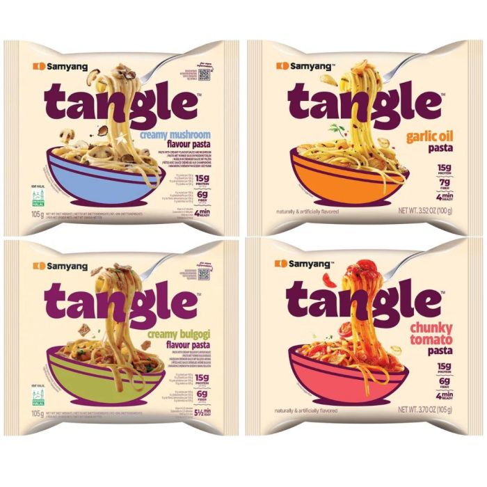 Samyang Tangle Mix Flavor Pasta Pack of 4 x 15g: Enjoy a variety of flavors in every pack. ️ Flavors Included: Creamy Mushroom, Garlic Oil, Chunky Tomato, and Creamy Bulgogi. Perfect for Variety This pasta pack offers a diverse range of flavors. Whether you prefer creamy, garlicky, chunky tomato, or creamy bulgogi, you'll find it here. Convenient and Versatile With each pack containing 4 x 15g, it's perfect for those who enjoy a mix of flavors. Ideal for meals or snacks. Easy to Enjoy Simply mix and enjoy the flavors. This pasta pack is a great choice for those who love variety in their meals. ️