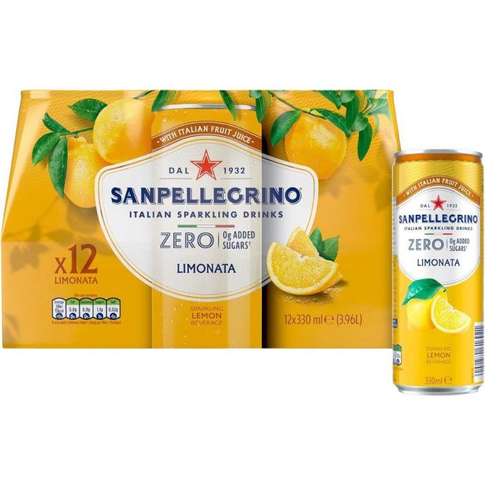 Title: Sanpellegrino Zero Lemon Sparkling Drink - Pack of 12 x 330ml Cans - No Added Sugars, Low Calories with Italian Fruit Juice