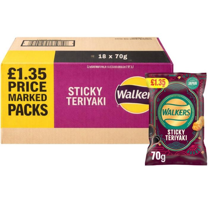 Description / Walkers Sticky Teriyaki Flavored Potato Chips PMP - Pack of 18 x 70g - Crispy Savoury Snack Box, Best Before: 10/01/2026