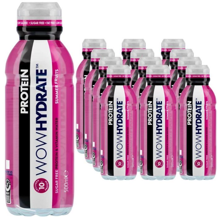 WOW HYDRATE Summer Fruits Protein Water - Pack of 12 x 500ml - Sugar-Free Sugar-Free: Enjoy a refreshing protein water without the added sugar for those looking for a healthier hydration option. Pack of 12 x 500ml: Get a convenient pack of 12 bottles, each containing 500ml of summer fruits protein water. Ideal for daily consumption. Key Features Summer Fruits: Infused with summer fruits, this protein water offers a delightful taste. Protein Water: Contains protein to support your hydration needs. Stay hydrated and energized. Summer Days: Keep hydrated during the summer with this refreshing protein water. Daily Hydration: A choice for daily hydration needs. Stay refreshed all day long.